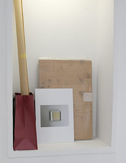 そこにありふれた日用品をポツンと置くと、なぜか作品に見えてしまいます。