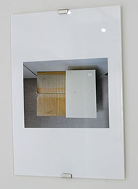 ・ こ ち ら の 壁 に 一 片 の 板 を 留 め る 。 こ ち ら の 壁 に 一 片 の テ ー プ を 貼 る 。