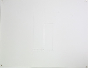 左からタイトル「箱に箱」(インクジェットプリント)でサイズ297×210mm、「柱とロッカー」(紙、鉛筆)で499×650mmです。