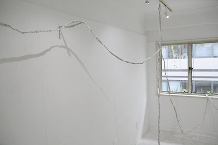 展示室A全体を使った作品と展示室B全体を使った作品(いずれもサイズ可変)のクローズアップ、一番下は展示室Bコーナーの作品です。。