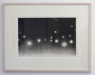 寡黙なモノクロームの画面でありながらその空間の広がりと密度の濃さは小林文香さんの木版画の特色です。