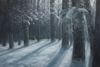 上條暁隆さんの作品で、「Winter Forest」(キャンバス、油彩)で54×81cm(M25)です。