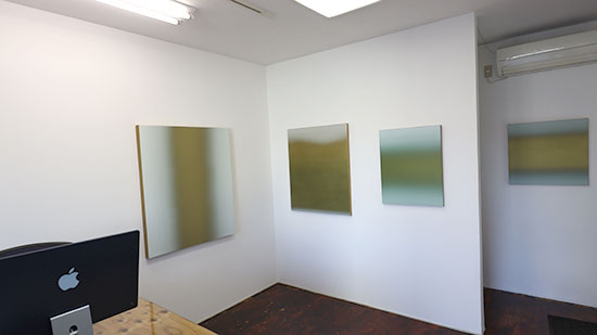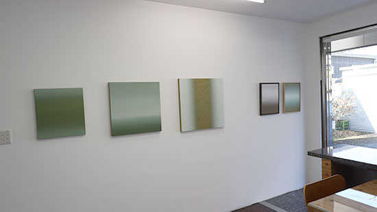 左から「Landscape#1698」(acrylic & oil on paper)で42.5x39cm、「Landscape#1703」(acrylic & oil on paper)で53x53cm、「Landscape#1737」(acrylic & oil on paper)で60x60cmです。