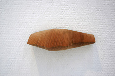 画廊入口から見て、正面と右側の壁面です。 木(カツラ)の作品が、正面壁面に四点、右側壁面に三点展示されています。 |