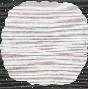 その下の絵とジョーゼットに描いた縞が重なって、平面に不思議な奥行きを作っています。