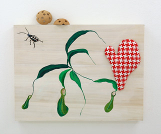 蝶々と共に描かれた球根の芽はペイントではなく布が使用されています。