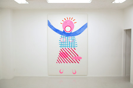 左から、タイトル「空へ」でサイズ227(H)×145(W)cm、「ぽんつく」で227×145です。