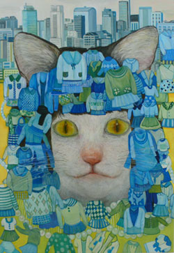 洋服はいつも身近にある安心できる存在であり、洋服をモチーフとして自己と他者との関係性を連想できるような絵画空間を目指しています。