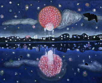 -光の戯れ-「花火」(キャンバスに水可溶性油絵具)でF15(53.0×65.0)です。