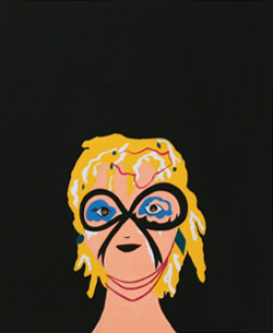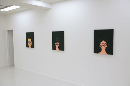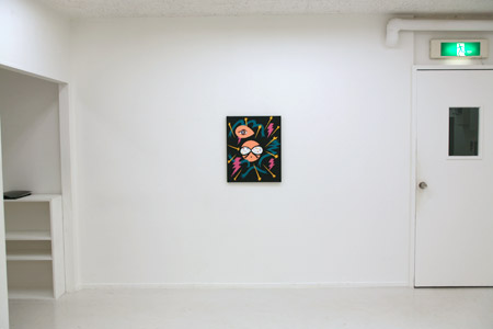 タイトル「untitled」(綿布・アクリル・ペン)で、サイズ800×800mmです。