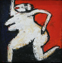 「ひとのかたち(12)」(漆喰、アクリル、水彩、油彩)で300×300cmです。