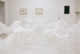 画廊に入って見た印象は、白い吊り糸が見えないので、雲のような紙が浮遊している、あるいは床から霧が発生しているかのようです。