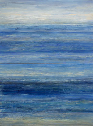 海や空、水辺のけしきのイメージを持ちながら、アクリル絵具で抽象的に描いています。