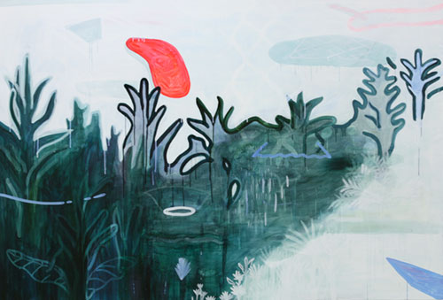 中野さんの描画の筆致にはグラフィティを思わせる即興性、及び東洋的、日本的な輪郭の使用があります。