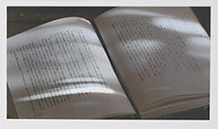 つまり見ることだけに頭を休めて専念していると、映っている書物と木漏れ日、微風の取り合わせが何とも美しい。